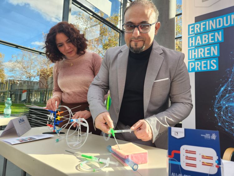 Die Erlebnisse von Hani Al-Khazzan ein Ärgernis zu nennen, wäre ein wenig deplatziert, aber auch nicht falsch. Al-Khazzan ist Herzchirurg in Stuttgart und muss kranken Patienten immer wieder Herzkatheter legen – oder unterstützt junge Kolleginnen und Kollegen dabei. Zunächst muss dabei ein Führungsdraht in die Arterie geleitet werden. Dabei sind viele verschiedene Handgriffe nacheinander zu erledigen – und es kann zu Missgeschicken kommen. Meist ist das ungefährlich. Aber mindestens kostet es Zeit und Nerven. Deshalb hat Al-Khazzan eine Art Toolkit für die Punktion entwickelt, das eine einfache Prozedur mit wenigen Arbeitsschritten ermöglicht – und seine Entwicklung selbstverständlich zum Patent angemeldet. So will er sich vor Nachahmern schützen und das volle Potenzial seiner Erfindung ausschöpfen. Der Markt sei groß, meint er. Weltweit gebe es jährlich mehr als 100 Millionen Anwendungsfälle.