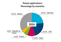 The DPMA regularly analyses how patent applications for green technologies are developing. The number of published patent applications from Germany in important areas of renewable energy generation increased significantly in 2024, as shown by an analysis of solar technology, wind energy and battery technology. This is presented in detail in the DPMA Annual Report 2024.