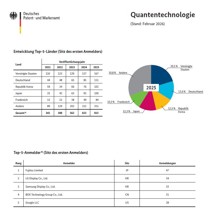 DPMA analysis: sevenfold increase in patent applications relating to quantum technology compared to ten years ago – German applicants in second place behind US applicants – DPMA President: Germany could be co-shaping crucial innovations – potential of quantum technology for Germany key topic at the DPMAnutzerforum in Munich
