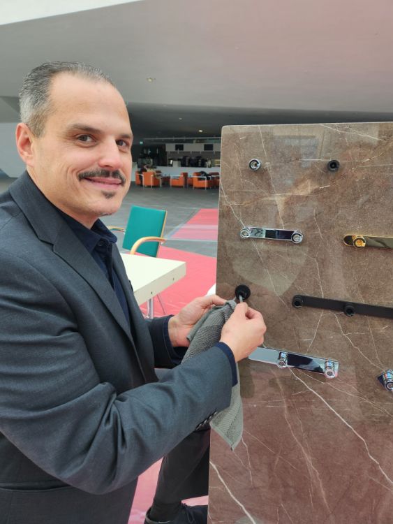 Auf seine Vorrichtung hat Oswald ein internationales Patent angemeldet. Neben der bestmöglichen Funktion habe er auch sehr auf das Design und auf eine hochwertige Verarbeitung geachtet, sagt Oswald. Inzwischen schwebt ihm eine Anwendung weit über die Werkstatt hinaus vor. An edlen Marmorverkleidungen oder vielleicht auf einem Kreuzfahrtschiff. Da wäre das Handtuch auch bei starkem Seegang sicher. Mit solchen Vorschlägen will er potenzielle Investoren überzeugen – und ist mit seiner Erfindung auf die Nürnberger Erfindermesse iENA gekommen.