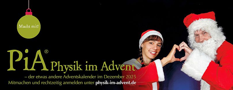 "PiA – Physik im Advent". Wir wünschen viel Freude beim Experimentieren und eine spannende Adventszeit.