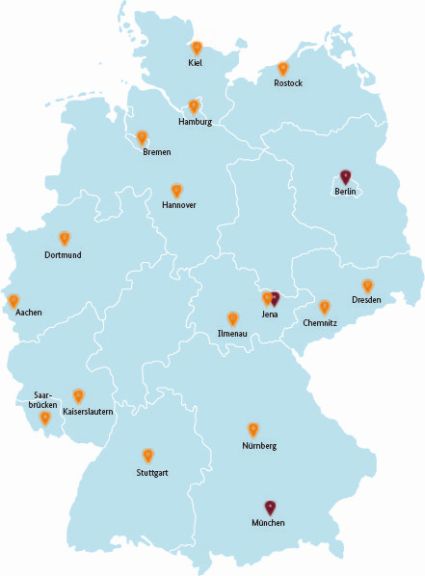 In Berlin, München und Jena bieten die Dienststellen des DPMA mit dem Informationsservice sowie betreuten Recherchemöglichkeiten an den Standorten München und Berlin hierfür einen geeigneten, geschützten Rahmen. Andernorts übernehmen die Patentinformationszentren seit Jahrzehnten zuverlässig diese Rolle: Sie stellen nicht nur ein umfassendes Informations- und Dienstleistungsangebot zu gewerblichen Schutzrechten zur Verfügung, sondern unterstützen Sie auch bei der Recherche in den elektronischen Datenbanken des DPMA.